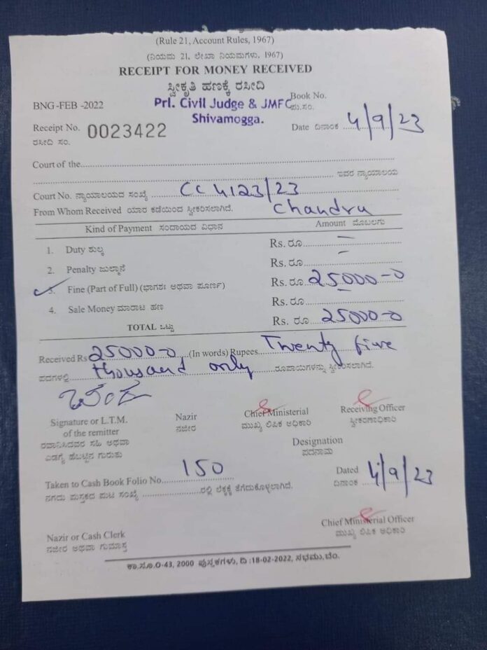 3. Vilation of registration permmit. ಅಪರಾಧಕ್ಕೆ ಮಾನ್ಯ ನ್ಯಾಯಾಲಯಕ್ಕೆ ನೊಟೀಸ್ ನೀಡಿದ್ದು, ಮಾನ್ಯ ನ್ಯಾಯಾಲಯವು ಅವರಿಗೆ 25,000 ರೂ. ದಂಡ ವಿಧಿಸಿದೆ.