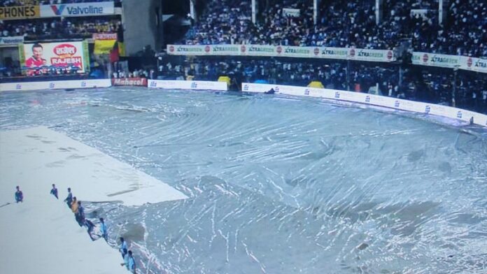 ಸುಮಾರು 20 ನಿಮಿಷಗಳಿಂದ ಮಳೆ ಅಡ್ಡಿಯುಂಟು ಮಾಡಿದೆ. ಹಾಗಾಗಿ ಓವರ್ ಕಡಿತಗೊಳಿಸಲು ನಿರ್ಧರಿಸಿರುವುದಾಗಿ ಮೂಲಗಳು ತಿಳಿಸಿವೆ. ಟೀಂ ಇಂಡಿಯಾ ಬ್ಯಾಟಿಂಗ್ ವೇಳೆಯು ಮಳೆ ಅಡಚಣೆಯುಂಟುಮಾಡಿತ್ತು.