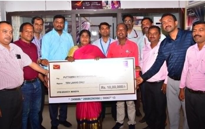 ಮಂಡ್ಯ: ಕುಟುಂಬಕ್ಕೆ ಆಧಾರವಾಗಿದ್ದವರನ್ನು ಕಳೆದುಕೊಂಡು ಸಂಕಷ್ಟಕ್ಕೆ ಸಿಲುಕಿದ್ದ ಕುಟುಂಬಕ್ಕೆ ಅಂಚೆ ಇಲಾಖೆ ಅಪಘಾತ ವಿಮೆ ನೆರವಿಗೆ ಬಂದಿದೆ. ಅದರಂತೆ 399 ರೂ ಪಾವತಿಸಿ ಪಾಲಿಸಿ ಪಡೆದಿದ್ದ ಹಿನ್ನೆಲೆಯಲ್ಲಿ ಆ ಕುಟುಂಬಕ್ಕೆ 10 ಲಕ್ಷ ರೂ ಪರಿಹಾರ ಸಿಕ್ಕಿದೆ.