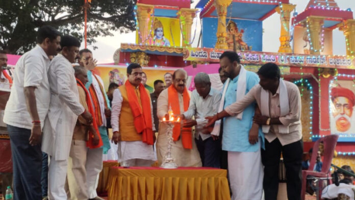 ಶಿವಮೊಗ್ಗದಲ್ಲಿ ಪೋಲೀಸರ ಮೇಲೂ ಕಲ್ಲು ತೂರಿದ್ದಾರೆ. ಆದರೆ ಗೃಹ ಸಚಿವರು ಅದು ಸಣ್ಣ ಘಟನೆ ಎನ್ನುತ್ತಾರೆ. ಅವರ ಪೊಲೀಸರೇ ಲಾಠಿ ಚಾರ್ಜ್ ಮಾಡಿದರೆ ಸಣ್ಣ ಘಟನೆ ಅನ್ನುತ್ತಾರೆ. ಯಾಕೆಂದರೆ ಅದನ್ನು ಸರ್ಕಾರದ ಮೊಮ್ಮಕ್ಕಳು ಮಾಡಿದ್ದಾರೆ. ರಾಗಿ ಗುಡ್ಡದಲ್ಲಿ ಗಣೇಶೋತ್ಸವ ನಡೆದಾಗ ಒಂದು ಸಣ್ಣ ಘಟನೆ ನಡೆಯಲಿಲ್ಲ. ಆದರೆ ಒಂದು ವಾರದ ಬಳಿಕ ಈದ್ ಮಿಲಾದ್ ಬಳಿಕ ಕಲ್ಲು ತೂರಾಟ ಆಯಿತು. ಬಿಜೆಪಿಯವರೇ ಅಂಥ ವೇಷ ಹಾಕಿಕೊಂಡು ಈ ತರ ಮಾಡುತ್ತಾರೆ ಅಂತ ಮಂತ್ರಿ ಹೇಳಿದ್ದಾರೆ. ಆದರೆ, ನಮ್ಮ ಹುಡುಗರು ಇನ್ನೊಂದು ವೇಷ ಹಾಕಿಕೊಳ್ಳುವ ಹೇಡಿಗಳಲ್ಲ ಎಂದು ಬಸವರಾಜ ಬೊಮ್ಮಾಯಿ ಹೇಳಿದರು. ಕಾರ್ಯಕ್ರಮದಲ್ಲಿ ಕೇಂದ್ರ ಸಚಿವ ಪ್ರಹ್ಲಾದ್‌ ಜೋಶಿ, ಶಾಸಕ ಬಸನಗೌಡ ಪಾಟೀಲ್ ಯತ್ನಾಳ್ ಸೇರಿದಂತೆ ಅನೇಕರು ಪಾಲ್ಗೊಂಡಿದ್ದರು.
