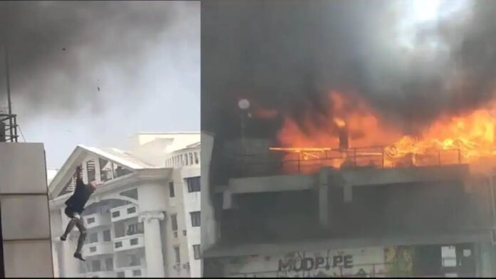 ಮಡ್ ಪೈಪ್ ಹುಕ್ಕಾ ಕೆಫೆನಲ್ಲಿ ಧಿಡೀರನೆ ಬೆಂಕಿ ಕಾಣಿಸಿಕೊಂಡ ಹಿನ್ನೆಲೆಯಲ್ಲಿ ಪ್ರಾಣ ಉಳಿಸಿಕೊಳ್ಳಲು ನಾಲ್ಕನೇ ಮಹಡಿಯಿಂದ ಓರ್ವ ವ್ಯಕ್ತಿ ಗಿಡದ ಮೇಲೆ ಜಿಗಿದಿದ್ದು, ಗಾಯಗಳಾಗಿವೆ. ಆತನನ್ನು ಕೊರಮಂಗಲದ ಸೈಂಟ್ ಜಾನ್ಸ್ ಆಸ್ಪತ್ರೆಗೆ ದಾಖಲಿಸಲಾಗಿದೆ.
